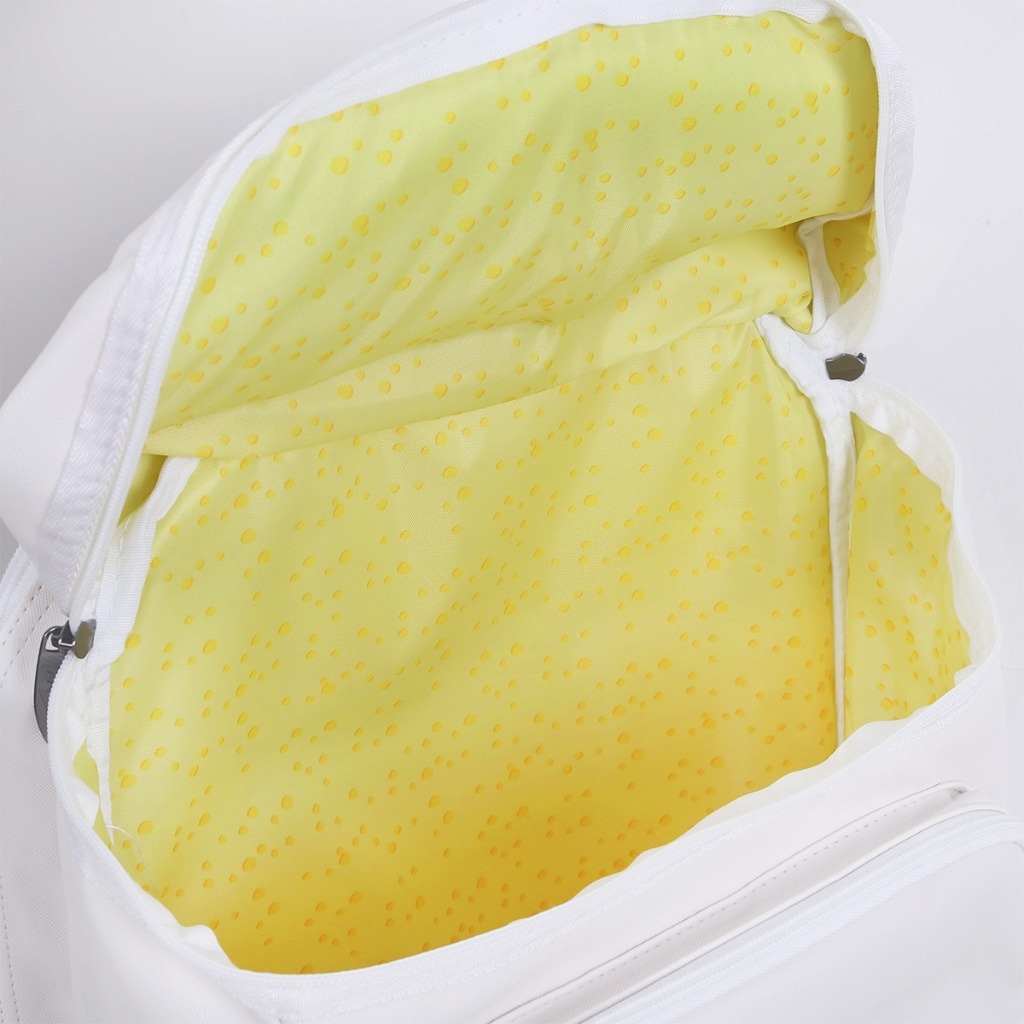 Equipped with dual-direction zippers and bold white design—blending style with ease of access.